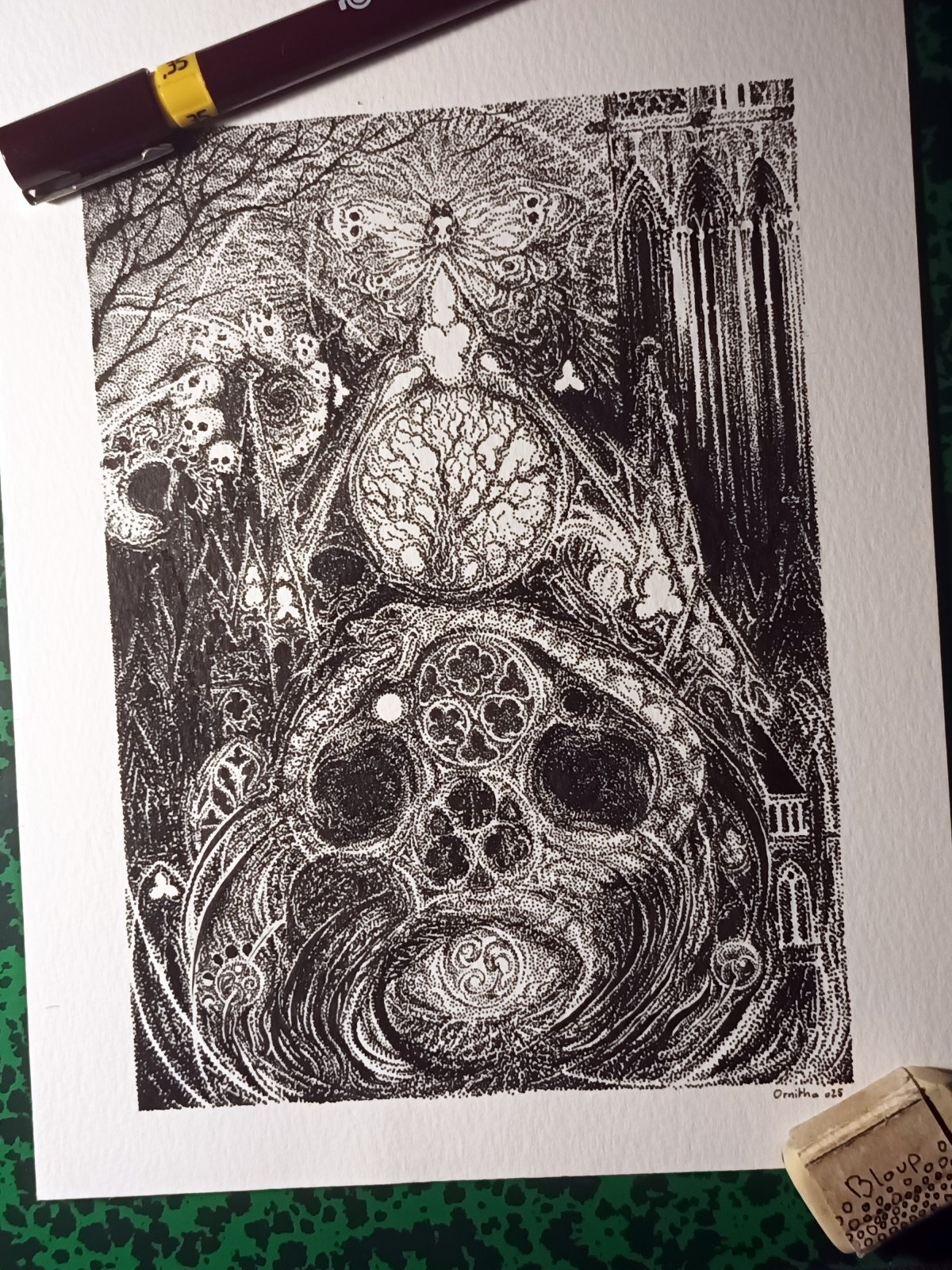 En 2013, Ornitha a commencé à faire des points au stylo sur papier, et n'a jamais cessé depuis. Dans ce qui était d'abord un simple jeu personnel, sans sens ni prétention, elle a petit à petit commencé à y trouver une profondeur, qui l'a poussée à partager ses créations.